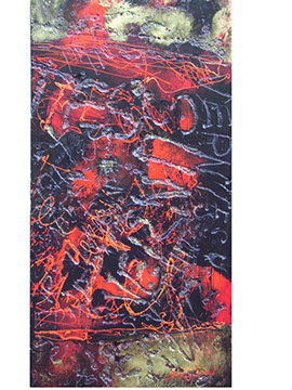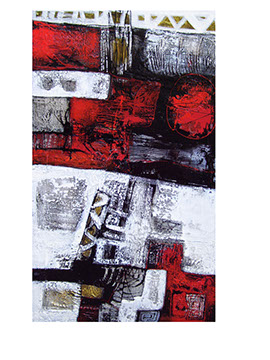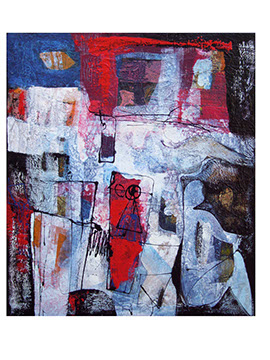 La sua espressione pittorica nasce dall’introspezione e porta alla luce, attraverso un uso controllato di colori e segni, le sensazioni più profonde ma anche le riflessioni e le reazioni che suscitano in lui la condizione e i comportamenti dell’uomo nella società contemporanea.