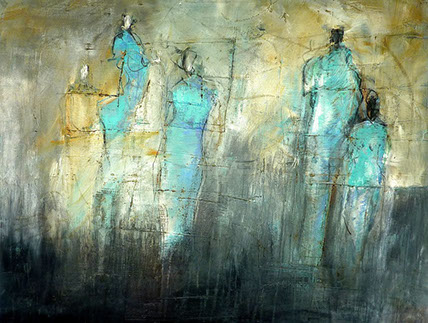 La figura pare oscillare come fosse imbevuta dall'attesa di un'altra atmosfera o di una dimensione lontana, come delle apparizioni.